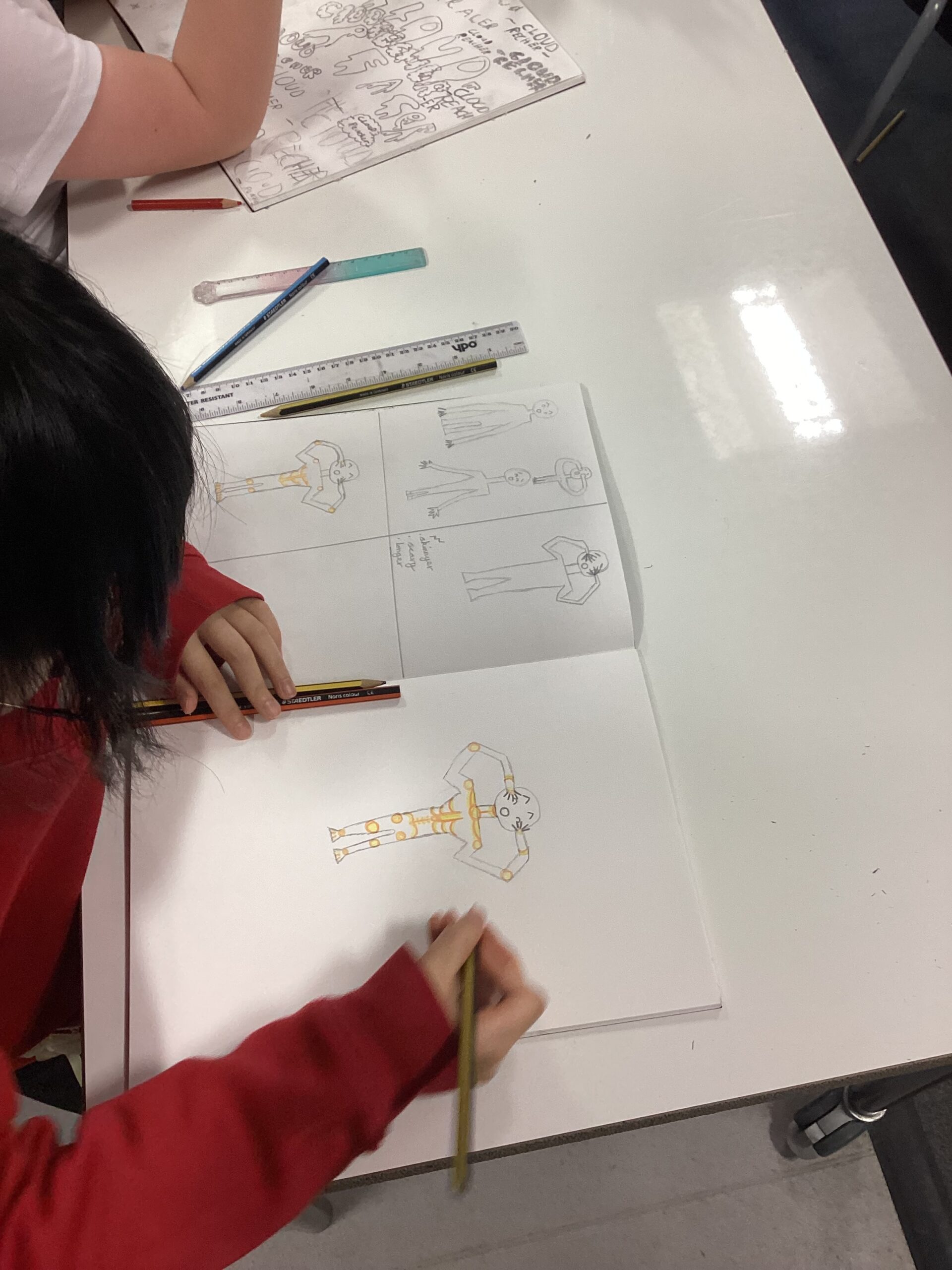 Art this term has been all about Kennings! We have created our own poems based on our fears to prepare for our final design. Today we drew our figure which we will place in the middle of our backgrounds. I cant wait for our designs to come together. Take a look at our step by step designs and reflection building up to our final design!