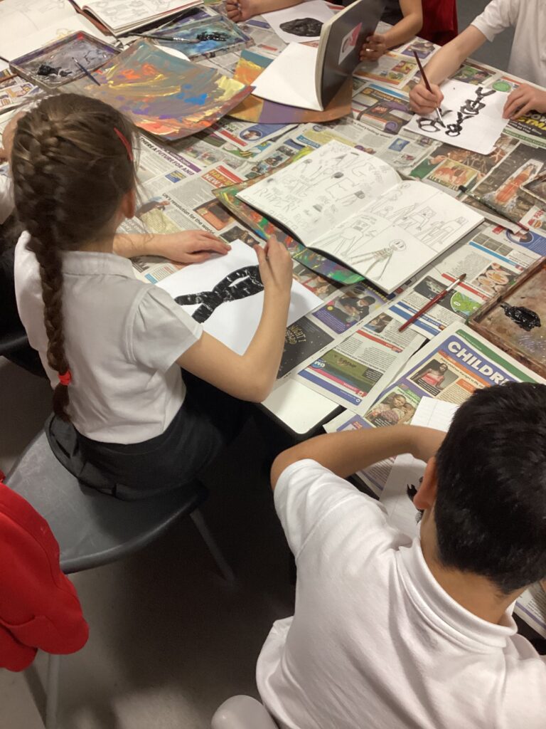 Our Art’s Fortnight is centred around our class novel ‘The Iron Man’ by Ted Hughes. Our first art project involved learning the skill of gestural drawings. We have spent two days in the art studio practising the skills of drawing with our arms, not our wrists. .